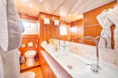 VIP cabin is located in the bow (bed dimension 160x190) and two further cabins, one with Twin beds (bed dimension 195 x 80) and the other with Double bed (bed dimension 195x200)