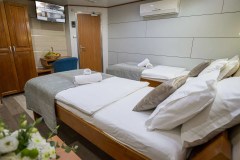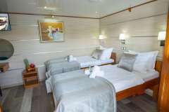 2 Convertible cabins (twin or double). Private bathroom with shower box and home-type toilet.