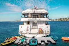 Advertised by Amwax Prime, the breathtaking charter yacht Karizma is a 157 ft yacht featuring a jetski and a hot tub. The most attractive features of Karizma are her well-chosen interiors and interconnection with the sea. She was constructed by a custom yachtbuilder in 2016. A comprehensive refit was completed in 2023. The spacious yacht layout features 17 large cabins and easily accommodates a group of 36 guests.