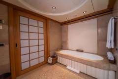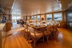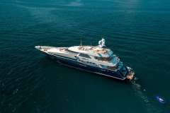 Introduced by Amwax Prime, the majestic charter yacht KIJO is a 144 ft yacht featuring a hot tub. The most appealing features of KIJO are her well-chosen interiors and culinary experience. She was constructed by the renowned boatbuilder Heesen in 2003. The well-planned yacht layout features 5 generous cabins and easily accommodates up to 12 guests.