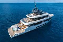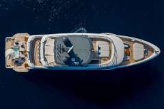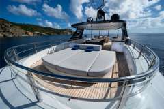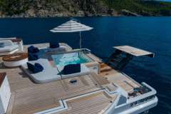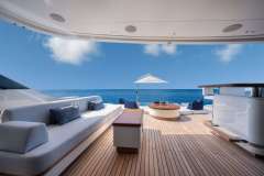 Moving up to the Skylounge area, this cozy space is perfect for movie night or even a quiet morning coffee when the wind may be too swift for outside sitting. There is a convenient and well-appointed day head on this level and the aft exterior lounge is very inviting for a pre-dinner social setting. The uppermost deck is superb for pre or post cocktail hour at the aft bar and a beautifully set dinner under the hard cover's arch. Forward on this deck as well as further on the bow are two large sunbeds, perfect for day lounging or stargazing at night. The options are truly endless aboard this magnificent Benetti, to the point that guests will rarely want to leave.