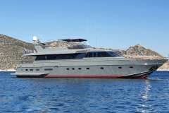 Offered by Amwax Prime, the majestic charter yacht Kiss is a 88 ft yacht featuring a jetski. The most attractive features of Kiss are her well-chosen interiors and fantastic layout. She was constructed by recognized shipbuilder Canados in 1992. A comprehensive refit was delivered in 2021. The spacious yacht layout features 4 large cabins and easily accommodates a group of 10 guests.
