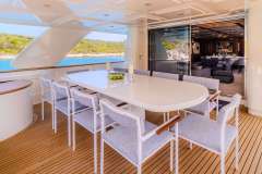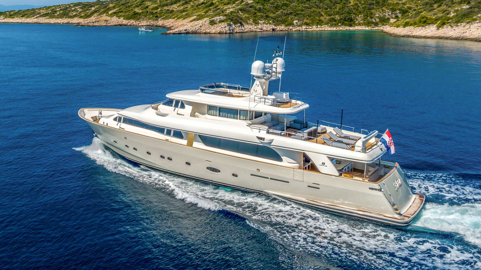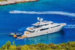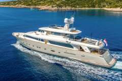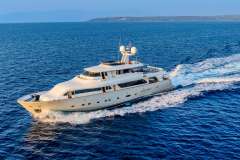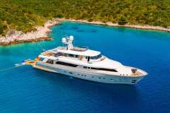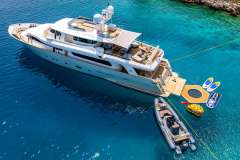 Offered by Amwax Prime, the breathtaking charter yacht KLOBUK is a 101 ft yacht featuring a jetski. The primary distinction of KLOBUK are her well-chosen interiors and alfresco dining areas. She was constructed by the well-known ship builder Ferretti in 2005. A succesful refit was fulfilled in 2023. The ingenious yacht layout features 5 cozy cabins and easily accommodates a maximum of 10 guests.