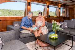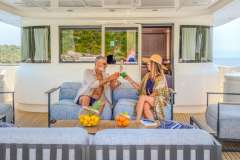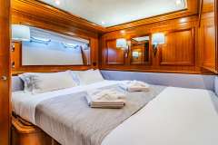 Klobuk features a Master cabin on the main deck forward area. The lower deck comfortably accommodates additional Guests in 4 cabins, including a VIP, Guest cabin and 2 Twin cabins with 2 pullman beds.Main deck: