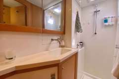 3 spacious queen cabins with new upgraded, mattresses with cooling memory foam, new hotel quality linens. Individual AC control in each cabin.Private ensuite, electric fresh water toilet, dry shower stall and sink.