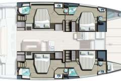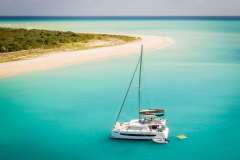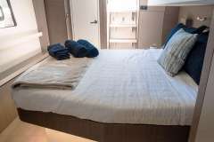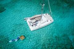 Koru comes equipped with every comfort needed for a world class sailing charter and boasts a huge amount of open space unrivaled by any cruising catamaran in its size range. Watch movies under the stars on the huge, cushioned foredeck, eat breakfast on the flybridge, lunch in the forward lounge and dinner as the sun sets in the spacious outdoor saloon. Three large queen sized staterooms each with separate dry heads and showers as well as walk around beds. Watch the kids wakeboard with your toes in the water sipping on cocktails on the integrated swim platform. Sail in style with a large square topped main, self-tacking jib and a 90 sqm Code 0 for light air conditions.Toys and activities on board include: