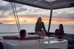 • Jacuzzi with sea view for 4 guests. Lounging and sofas, dinging area with optional bimini shade.