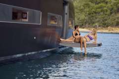 • Swim platform large enough for beach club styling, with port and starboard stair access and swim ladder.