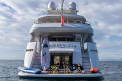 Advertised by Amwax Prime, the breathtaking charter yacht LADY G II is a 146 ft yacht featuring a jetski and a hot tub. The main attractions of LADY G II are her well-chosen interiors and interconnection with the sea. She was delivered by the ship builder Mondomarine in 2003. A succesful refit was fulfilled in 2019. The expansive yacht layout features 5 cozy cabins and comfortably accommodates a group of 10 guests.