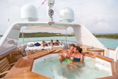 SUN DECK: Oversized sun pads, full wet bar, Jacuzzi, and two chaise lounges.