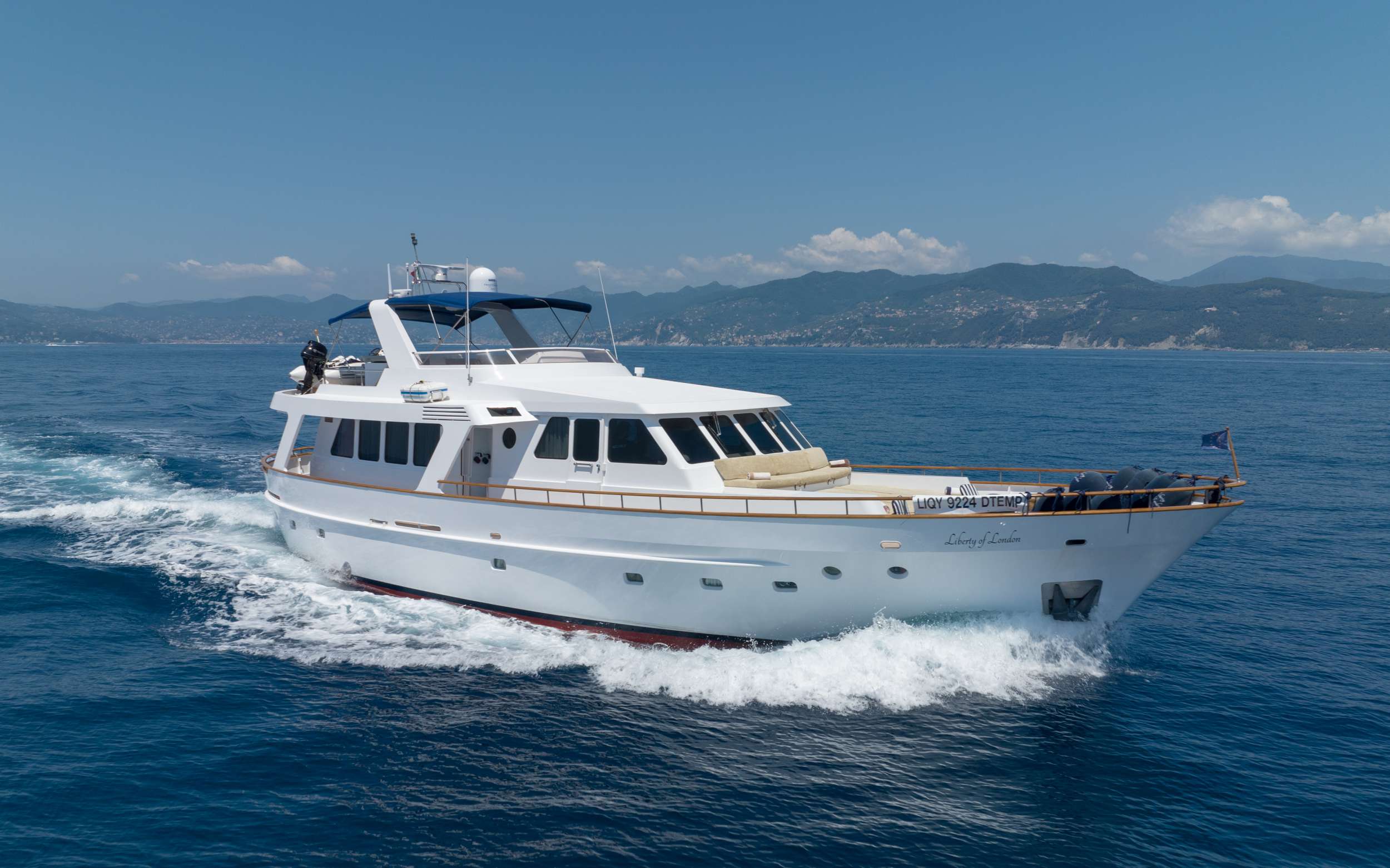 Introduced by Amwax Prime, the astonishing charter yacht LIBERTY OF LONDON is a 78 ft yacht. The primary distinction of LIBERTY OF LONDON are her impeccable styling and fantastic layout. She was constructed by a custom yachtbuilder in 1991. A comprehensive refit was fulfilled in 2023. The spacious yacht layout features 4 cozy cabins and easily accommodates up to 8 guests.