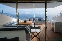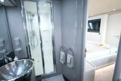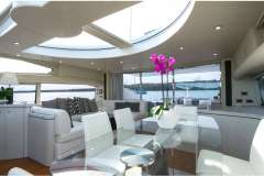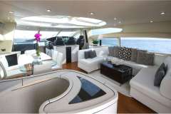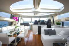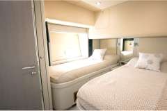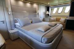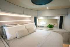 Forward VIP guest cabin and full beam master cabin amidships together with a twin bunk-bed to port and a twin cabin to starboard, all with unsuited bathrooms. The large salon and galley are luxuriously appointed and all accented with signature Sunseeker style where you can feel the quality of materials.