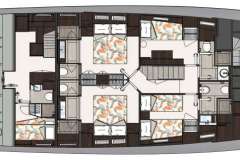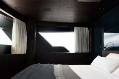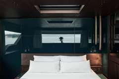 The Sanlorenzo SX 88 Luar offers accommodation to up to 8 (+1)* guests in 4 ensuite guest staterooms. The owner stateroom in the main deck forward, Two VIP cabins and a twin cabin with sliding beds convertible into one double bed in the lower deck.* If possibile, an extra single cabin connected to the adiacent VIP cabin offers accommodation for one guest, preferrably a child.