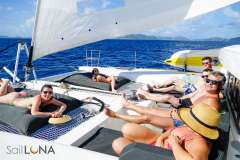 Join Captain Nim and Chef Fabiola for an island-hopping adventure on their 45-foot luxury catamaran—a 2019 Lagoon 450S, custom-outfitted for added space and uncompromising comfort.
