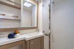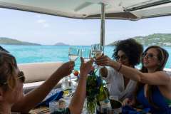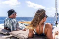 Luna Bliss will accommodate 8 charter guests in 4 spacious queen cabins. She features a water maker, ice maker, full sized refrigerator, a fully customizable menu, ecofriendly and reef safe toiletries, a bar stocked to guest preference, coffee/espresso machine, rendezvous scuba diving, snorkeling gear, underwater scooters, subwing, wakeboard, stand up paddle board, towable water tube, 10 ft. floating dock, pool noodles, fishing gear, board and card games, television in the salon, Fusion 3 Bluetooth enabled sound system and Luna Bliss giveaways.