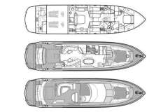 WIFI, Smart TVS in all cabins, Separate sound systems with Bose speakers, Showers all equipped with jets,A/C with 9 controlled zones ,Full size fridge and freezer, Barbeque ,Bathing platform, bow sunbathing area , Full shade option in Fly bridge, Underwater lights