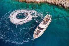 Advertised by Amwax Prime, the breathtaking charter yacht M FIVE is a 75 ft yacht featuring a jetski. The most attractive features of M FIVE are her generous space and alfresco dining areas. She was constructed by the renowned boatbuilder Sunseeker in 2007. The ingenious yacht layout features 4 large cabins and comfortably accommodates a group of 8 guests.
