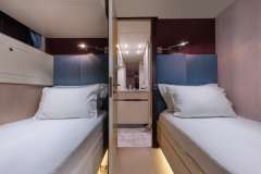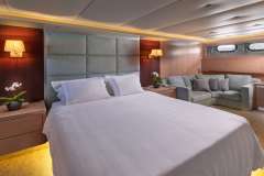 1 x Master Suite located on the main deck forward - en suite facilities with tub and shower1 x full beam VIP Suite located on the lower deck, en suite facilities with shower