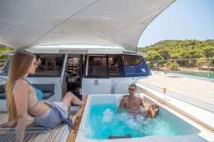 Indulge in the spaciousness and comfort that Majesty of Greece offers, where every inch is designed for your relaxation and enjoyment. From the expansive cockpit perfect for social gatherings to the sun-kissed flybridge and the inviting foredeck with a Jacuzzi, this yacht is your luxurious playground on the water.
