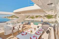 Advertised by Amwax Prime, the majestic charter yacht MAKANI II is a 114 ft yacht featuring a jetski and a hot tub. The most valuable elements of MAKANI II are her impeccable styling and experienced crew. She was delivered by the renowned boatbuilder Sunseeker in 2013. A comprehensive refit was fulfilled in 2023. The well-planned yacht layout features 5 cozy cabins and comfortably accommodates up to 12 guests.