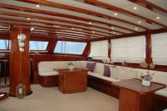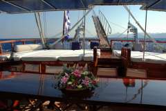 From the first time you board MATINA, this beautiful 125ft wooden motor sailer with her immense beam and large teak deck, you know you will have a dream holiday. You will be impressed by the ample space for sunbathing and relaxing on large cushions, the spacious interior rich with mahogany and warm colors and her smooth sailing.