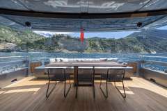 The sun deck features another option for alfresco dining, accompanied with a large bar area where guests can seamlessly enjoy evening cocktails before indulging into world class food prepared by the chef.