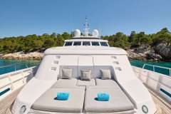 Presented by Amwax Prime, the majestic charter yacht MILOS AT SEA is a 114 ft yacht. The most valuable elements of MILOS AT SEA are her absolute comfort and alfresco dining areas. She was constructed by the renowned boatbuilder Codecasa in 2000. A comprehensive refit was finalized in 2022. The well-planned yacht layout features 4 large cabins and easily accommodates up to 10 guests.