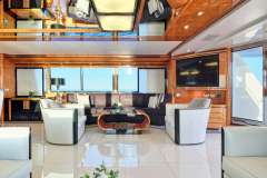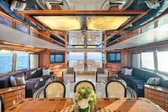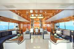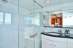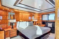 Master Stateroom on main deck with two separate private his and hers en-suites (one includes a sauna cabin). Sofa and safe box.โจ One VIP full width stateroom on lower deck with en suite facilities.โจTwo Twin cabins (each has a pullman berth) with ensuite, large wardrobe and desk. โจAll cabin facilities are Ipad or Crestron controlled.โจ All cabins have safe boxes.