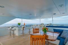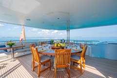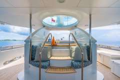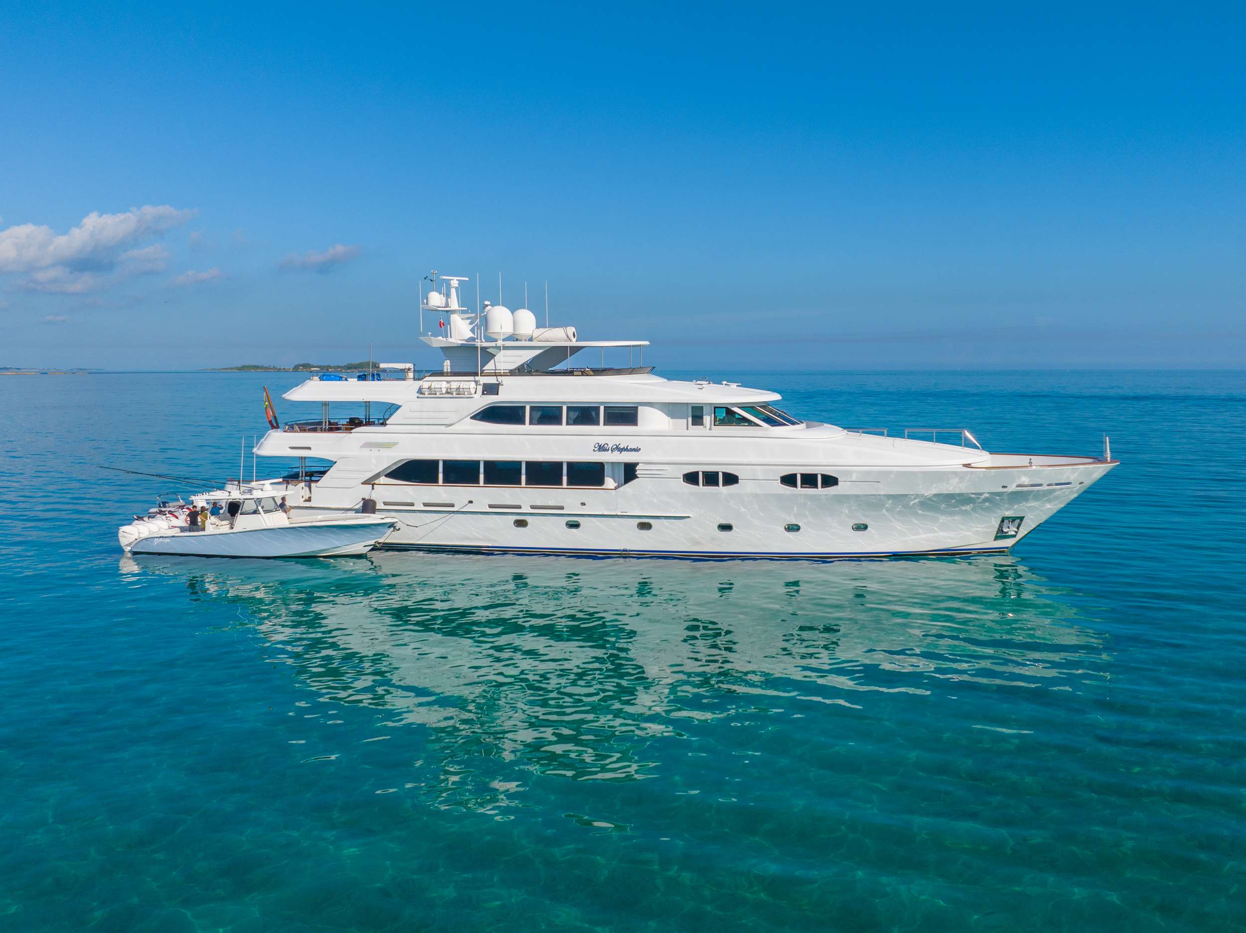 MISS STEPHANIE epitomizes luxury charter, with elegant accommodations and attention to detail throughout. She boasts a spacious interior including an on-deck Master suite, a lovely main salon and an inviting skylounge. Her exterior deck spaces do not disappoint, offering vast seating areas, al fresco dining and a large sun deck perfect for enjoying the stunning views that the Bahamas has to offer!