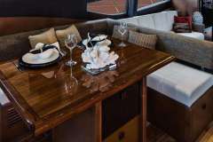 Sea Ray styling has always been on the “racy” side — the boats reminding one of a Doberman straining against a leash, just aching to be turned loose. The foredeck is home to a cleverly designed lounge area, adding additional outdoor social space for sun worshipers. While Sea Ray has certainly upped its game in the luxury and onboard convenience categories, it has not forgotten its breeding and background. The new L650 is a powerful, high-speed, solid performer with an intelligent array of luxury features.Cabin arrangement of Miss Understood?