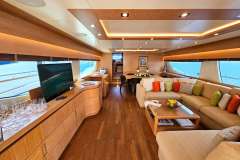 Presented by Amwax Prime, the majestic charter yacht MYTHOS G is a 85 ft yacht featuring a jetski. The primary distinction of MYTHOS G are her elegant profile and fantastic layout. She was completed by the famous yacht builder POSILLIPO TECHNEMA in 2009. An elegant refit was finalized in 2021. The expansive yacht layout features 4 large cabins and easily accommodates up to 10 guests.