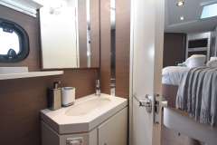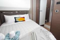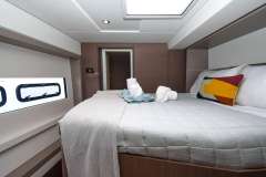 This brand new 2022 luxurious sailing catamaran, NAE KAE, is a superb example of what Bali can design. As you step on board in to a beautifully appointed cockpit, complete with teak floors and dining table for ten and a comfortable lounging bench, you immediately realize what a unique charter experience you are about to have. As you make your way up to the flybridge you’ll be blown away by the amazing turquoise water with 360° views and enjoy the up-close view of the sails. It’s also a great place to read your favorite book or a favorite spot for appetizers and cocktails at sundown. The main salon is comfortable and luxurious with open spaces and natural light fed by all the windows surrounding you. All guest cabins are spacious with large windows and offer plenty of natural light. For your comfort, every cabin offers queen sized beds and private baths with dedicated shower stalls as well as individual cabin A/C control. The high level of finishing throughout every cabin reflects the luxury that you would expect from a yacht of this caliber. With all the different areas, NAE KAE is show-stopper and has enough amenities for everyone to enjoy!