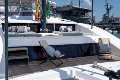 When not exploring the Caribbean and Mediterranean waters, guests can take advantage of the trampoline beds located forward, an ideal spot for soaking up the sun or enjoying a starlit evening. The spacious flybridge offers 360- degree view and is equipped with comfortable seating, making it a perfect spot for cocktails and conversations.