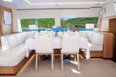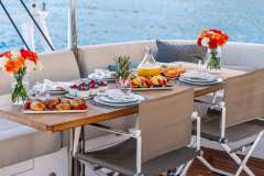 The multihull configuration offers expansive living areas that provide ample space for relaxation and socializing. Guests can enjoy chef’s delectable meals in the main salon or choose from multiple al-fresco dining options while watching the sunset and making every meal a breathtaking experience.