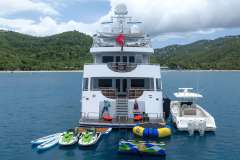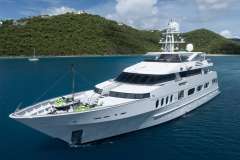 140’ Motor Yacht NEVER ENOUGH is better than ever.She has completed an extensive refit which includes new engines, decks, beds, soft goods and many other thoughtful details to enhance guest comfort, NEVER ENOUGH accommodates ten guests in five staterooms: an on-deck King Master, two queens and two twins. The entire yacht sparkles and has new soft furnishings throughout. A large swim platform provides easy access to water fun. Water toys include a new 32 Ft. Boston Whaler and two new three-person Waverunners. NEVER ENOUGH shows like a brand new Feadship.