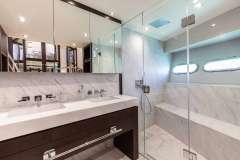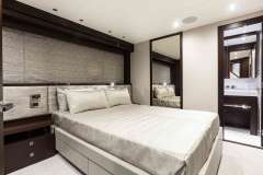 The multi-level master cabin is located forward and is wonderfully spacious with gorgeous sea views. The cabin makes full use of the yacht’s 6.55m beam with a superbly designed ensuite bathroom, complete with a rainfall shower.