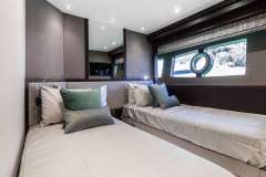 The four ensuite guest cabins are located on the lower deck, comprising of two doubles and two twins with the beds easily converted into doubles, providing flexibility in the layout depending on each party’s requirements.