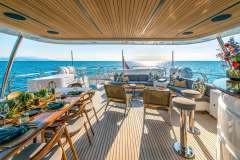 - The master cabin is situated on the main deck. It is composed of a spacious bathroom with steam shower and Jacuzzi, and an impressive 180ยฐ view. In addition, the master cabin disposes of a large walk-through wardrobe.