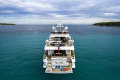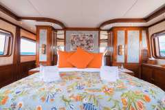 NEW STAR accommodates eight guests in three double suites and a twin stateroom โ€“ ideal both for couples and families thanks to the layout separating the master bedroom & the VIP from the other cabins, ensuring extra level of privacy.