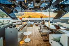 Presented by Amwax Prime, the majestic charter yacht NO STRESS 888 is a 98 ft yacht featuring a jetski. The highlights of NO STRESS 888 are her absolute comfort and alfresco dining areas. She was delivered by the famous yacht builder Riva in 2019. A well-done refit was delivered in 2024. The ingenious yacht layout features 5 large cabins and easily accommodates up to 10 guests.