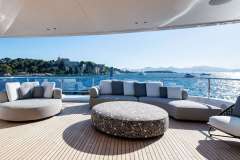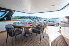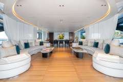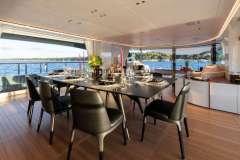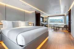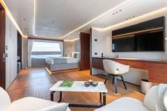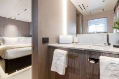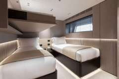 NORTHERN ESCAPE can accommodate up to 12 guests in a flexible five or six cabin layout, including a main-deck full-beam master suite with an office area, dressing rooms and his and her bathrooms. An additional room on the main deck provides even greater flexibility, with two fold-down pullman beds that can serve as an extra guest cabin or be converted into a wellness room for ultimate relaxation. The rest of the accommodation is on the lower deck and includes two double cabins, and two twin convertibles with additional Pullman beds.