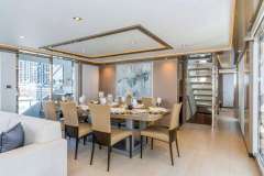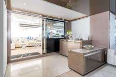 The main salon and formal dining area of O flow seamlessly from the aft deck, providing guests with stunning views and a luxurious ambiance. The yacht also features a sky salon, which is perfect for family movie nights or enjoying drinks at the wet bar.