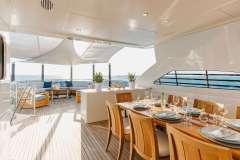 When it comes to water toys, this yacht does not miss a beat. A large, well organized lazarette allows for crew to easily and discretely provide guests their picks of the day for watersports activities, while enjoying the beach club and view at waterline level.