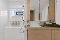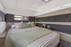 Unwind in the spacious master suite or one of the two queen en-suite cabins, each equipped with zoned air conditioning for personalized comfort. Enjoy breathtaking 360° views from the flybridge's cozy L-shaped settee and sunbed, or relax on the trampoline as the gentle sea breeze surrounds you.