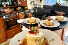 Captain Christian will expertly navigate you through the Caribbean’s crystal-clear waters, while Chef Laura delights you with gourmet meals crafted to perfection.