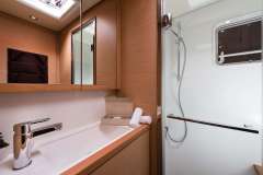 Complete interior layout is elegantly incorporating wood finish, upholstery, inner liners, and more. A functional fly bridge can also accommodate guests thanks to separate crew and reception areas. Saloon and cockpit are beautifully integrated and include “wet bar”, areas for lazing around and the option on taking delicious meals inside or out without having to make any adjustments.