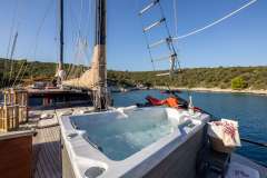 Offered by Amwax Prime, the impressive charter yacht Pacha is a 91 ft yacht featuring a jetski and a hot tub. The most attractive features of Pacha are her elegant profile and alfresco dining areas. She was completed by recognized shipbuilder TUZLA SHIPYARD in 2000. A well-done refit was fulfilled in 2022. The ingenious yacht layout features 4 cozy cabins and comfortably accommodates a group of 9 guests.