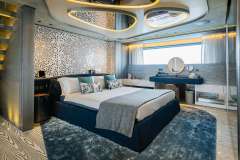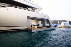 On the lower deck, she features a wonderful beach club with comfortable sunbeds, which also serves as the yacht’s incredible tender and toy garage. The impressive collection includes two Williams tenders, a jet ski, three Seabobs, a fliteboard, water skis, wake board, kayaks, paddleboards, a swimming pool, inflatable pyramid with slide, a trampoline and three floating pontoons for endless amounts of fun on the water.