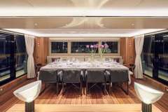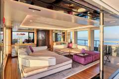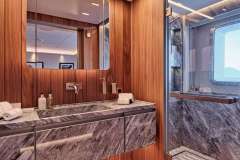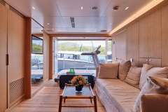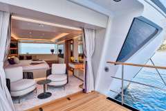 Accommodation is in 5+1 cabins:Owner's Cabin on Main Deck with King Size Bed, opening balcony, walk-in closet and en-suite facilities. Plus adjacent cabin with Double Sofa Bed, large opening window and en-suite facilities. Can also be used as separate TV room to Owner's cabin.