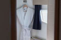 While guests can also choose to unwind in the spacious cockpit or on the magnificent sun lounger at the fore, which provides an indulgent all-weather retreat adjacent to concealed storage lockers. The boat’s design provides seamless movement and communication between the cockpit, helm station and lounge deck, while the incredible space in the saloon evokes the ambience traditionally found only on much larger yachts.